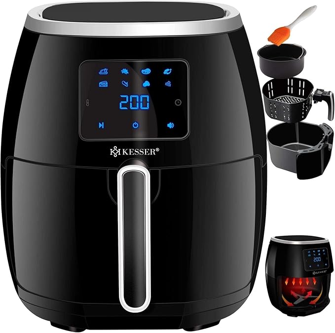 Die KESSER® XXL 5,5-Liter-Heißluftfritteuse ist das perfekte Gerät für alle, die gerne kochen. Mit acht Programmen und einem digitalen Touch-Display ist sie einfach zu bedienen und perfekt für jeden Kochwunsch. Und weil sie kein Öl verwendet, ist sie gesünder für dich und deine Familie. Und das mitgelieferte Rezeptheft macht es dir leicht, neue und spannende Rezepte auszuprobieren. Und das Beste daran? Die Heißluftfritteuse ist fettfrei, d.h. es gibt keine Gerüche und kein Altöl, das entsorgt werden muss. Außerdem ist sie leicht zu reinigen, was sie zur perfekten Ergänzung für jede Küche macht.