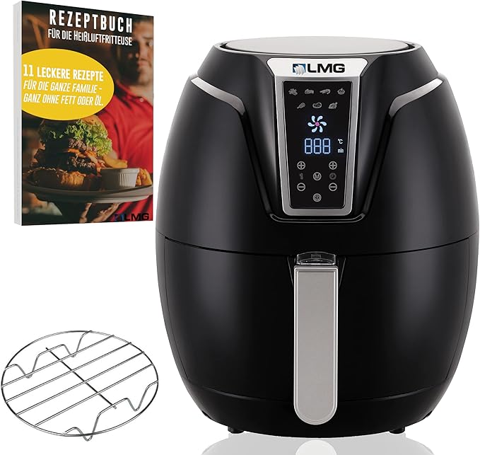 Mit der Heißluftfritteuse Premium 3.2L von LMG kannst du ohne Öl frittieren, backen, grillen und braten. Der 3,2-Liter-Behälter bietet Platz für bis zu 5 Portionen Pommes frites und arbeitet so leise, dass man ihn nicht bemerkt. Die ausgeklügelte Technologie des LMG GLA610 ermöglicht die perfekte Balance zwischen Temperatur und zirkulierender Heißluft. So kannst du die Profi-Fritteuse nicht nur zum knusprigen & herzhaften Frittieren, sondern auch zum Backen, Grillen und Braten verwenden. Du kennst die perfekte Garzeit nicht? 8 vorprogrammierte Programme zaubern dein Lieblingsgericht mit nur einem Klick.
