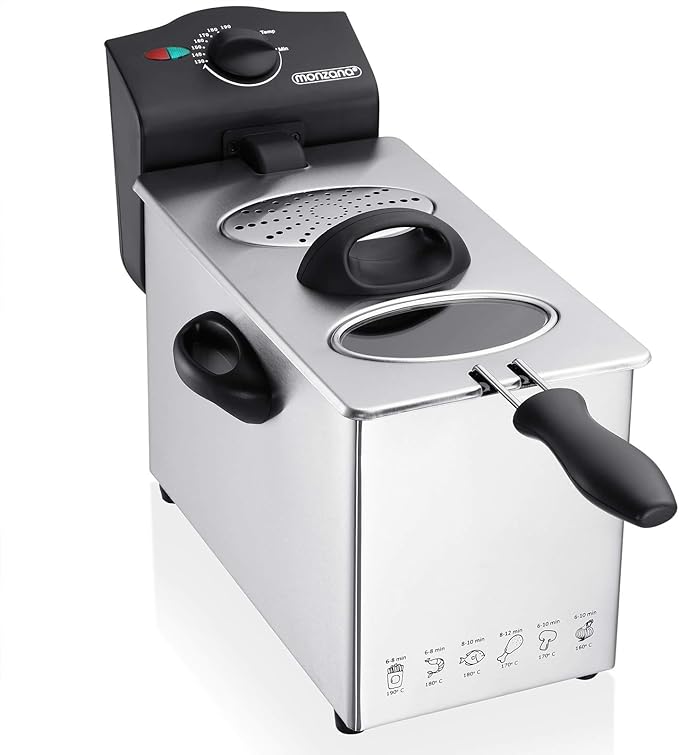 Wenn du frittierte Speisen liebst, aber den Aufwand und den Geruch des traditionellen Frittierens nicht magst, ist die Monzana Fritteuse genau das Richtige für dich. Dieses vielseitige Gerät kann dank seines Fassungsvermögens von 3 Litern große Mengen an Lebensmitteln frittieren. Und weil sich die Heizspirale im Öl befindet, gibt es kaum Gerüche. Du kannst sogar den Filter austauschen, um eine Geruchsbildung zu vermeiden. Außerdem ist die Fritteuse einfach zu bedienen: Du musst sie nur an den Strom anschließen und sie startet automatisch. Wenn du fertig bist, verstaue das Netzkabel in der Aufbewahrungskammer auf der Rückseite. Genieße perfekt frittierte Speisen ohne viel Aufhebens.