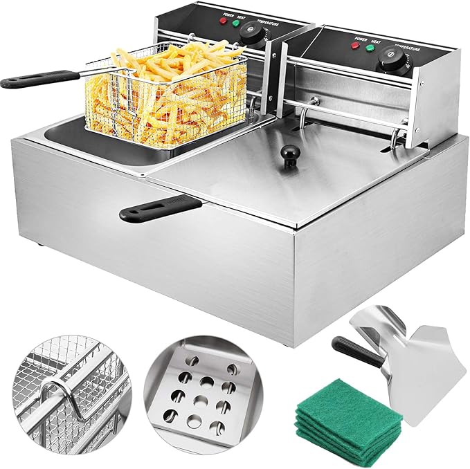 Sie suchen eine zuverlässige und langlebige elektrische Fritteuse? Dann sollten Sie sich die Husuper 5000W Profi-Elektrofritteuse ansehen! Mit einer Leistung von 5000 Watt erledigt diese Fritteuse die Arbeit schnell und effizient. Und dank ihrer zwei einzelnen Tanks kann sie große Mengen an Lebensmitteln auf einmal aufnehmen. Und dank der robusten Ablasshähne lässt sich überschüssiges Öl leicht ablassen. Und dank der präzisen Temperaturregelung können Sie Ihre Speisen jedes Mal perfekt zubereiten. Warum also warten? Sichern Sie sich noch heute die Husuper 5000W Professional Elektrofritteuse!
