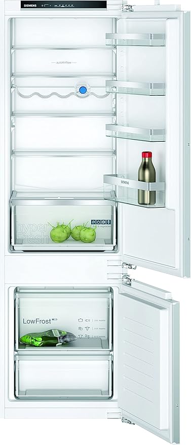Die Siemens KI87VVFE1 iQ300 Einbau-Kühl-Gefrierkombination ist die perfekte Wahl für alle, die das Beste aus beiden Welten wollen. Mit der LowFrost-Technologie kannst du dich von der Eisbildung verabschieden, und die LED-Beleuchtung sorgt dafür, dass dein Gefrierschrank immer gut beleuchtet ist, ohne zu blenden. Außerdem eignet sich das bottleRack perfekt für die Lagerung von Flaschen und Dosen aller Größen, während die hyperFresh-Schublade deine Lebensmittel länger frisch hält. Und mit der superFreezing-Funktion kannst du die Temperatur deines Gefrierschranks schnell absenken, um zusätzliche Lebensmittel sicher zu lagern. Wenn du also auf der Suche nach einer Kühl-Gefrier-Kombination bist, die sowohl effektiv als auch effizient ist, ist der Siemens KI87VVFE1 iQ300 die perfekte Wahl für dich.