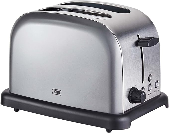 Beginnen Sie Ihren Tag mit dem KHG Edelstahl-Toaster mit Brötchenaufsatz. Dieser stilvolle Toaster bringt mit seinem anthrazitfarbenen Farbakzent einen Hauch von Retro-Design in Ihre Küche. Der TO-1005 von KHG verfügt über 6 Bräunungsstufen, so dass Sie Ihren Toast immer genau so hinbekommen, wie Sie ihn mögen. Für zusätzlichen Komfort verfügt der Toaster über einen Brötchenaufsatz, mit dem Sie Frühstücksbrötchen perfekt zubereiten können. Der Toaster verfügt außerdem über LED-beleuchtete Tasten für zusätzliche Funktion und Stil. Mit einer Leistung von 1000 Watt wird der KHG Edelstahl-Toaster alle Ihre Toastanforderungen spielend erfüllen.