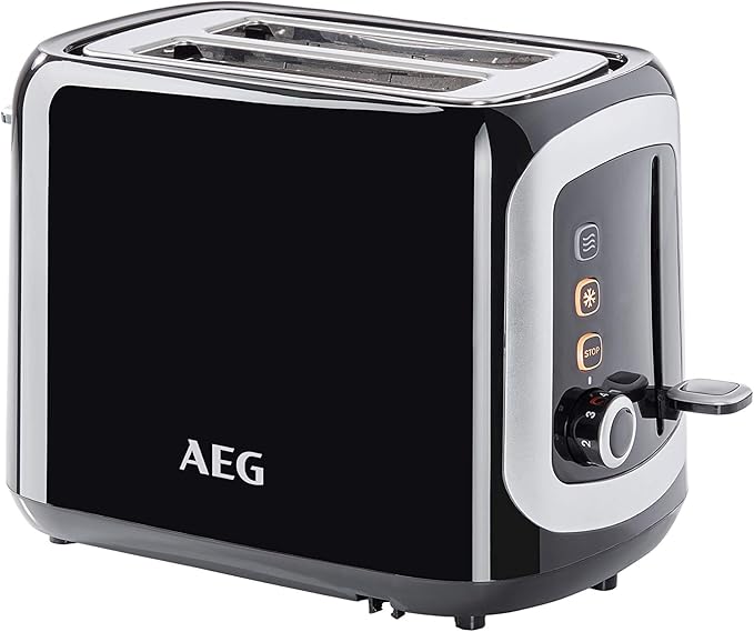 Sie suchen einen hochwertigen Toaster mit tollen Extras? Dann ist der AEG AT 3300 Doppelschlitz-Toaster genau das Richtige für Sie. Dieser Toaster verfügt über eine Staubschutzhaube und einen integrierten Brötchenaufsatz zum Backen von Brötchen und Croissants. Mit 7 Bräunungsgradeinstellungen, Stopp-, Auftau- und Aufwärmfunktion hat dieser Toaster alles, was Sie brauchen. Außerdem schützt das wärmeisolierte Cool-Touch-Gehäuse vor Verbrennungen. Das herausnehmbare Krümelfach und die Leistung von 940 Watt machen diesen Toaster praktisch und effizient. Die sensorgesteuerte elektronische Toastzeitkontrolle und die Stopptaste mit Funktionsleuchte machen die Bedienung einfach.